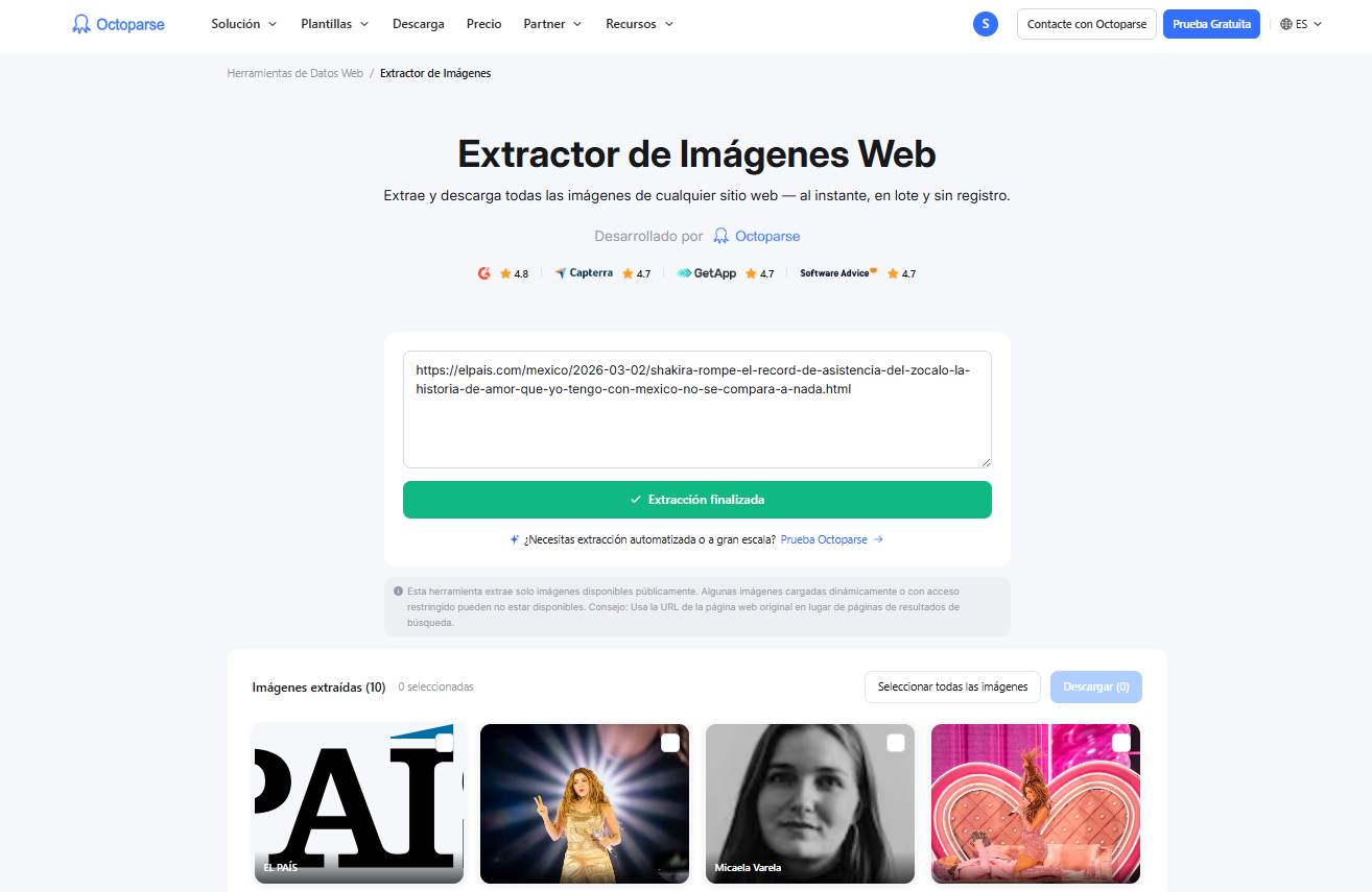 - Extractor de Imágenes Web (Octoparse) — extracción rápida desde páginas públicas