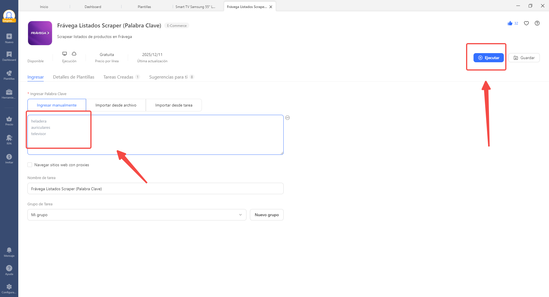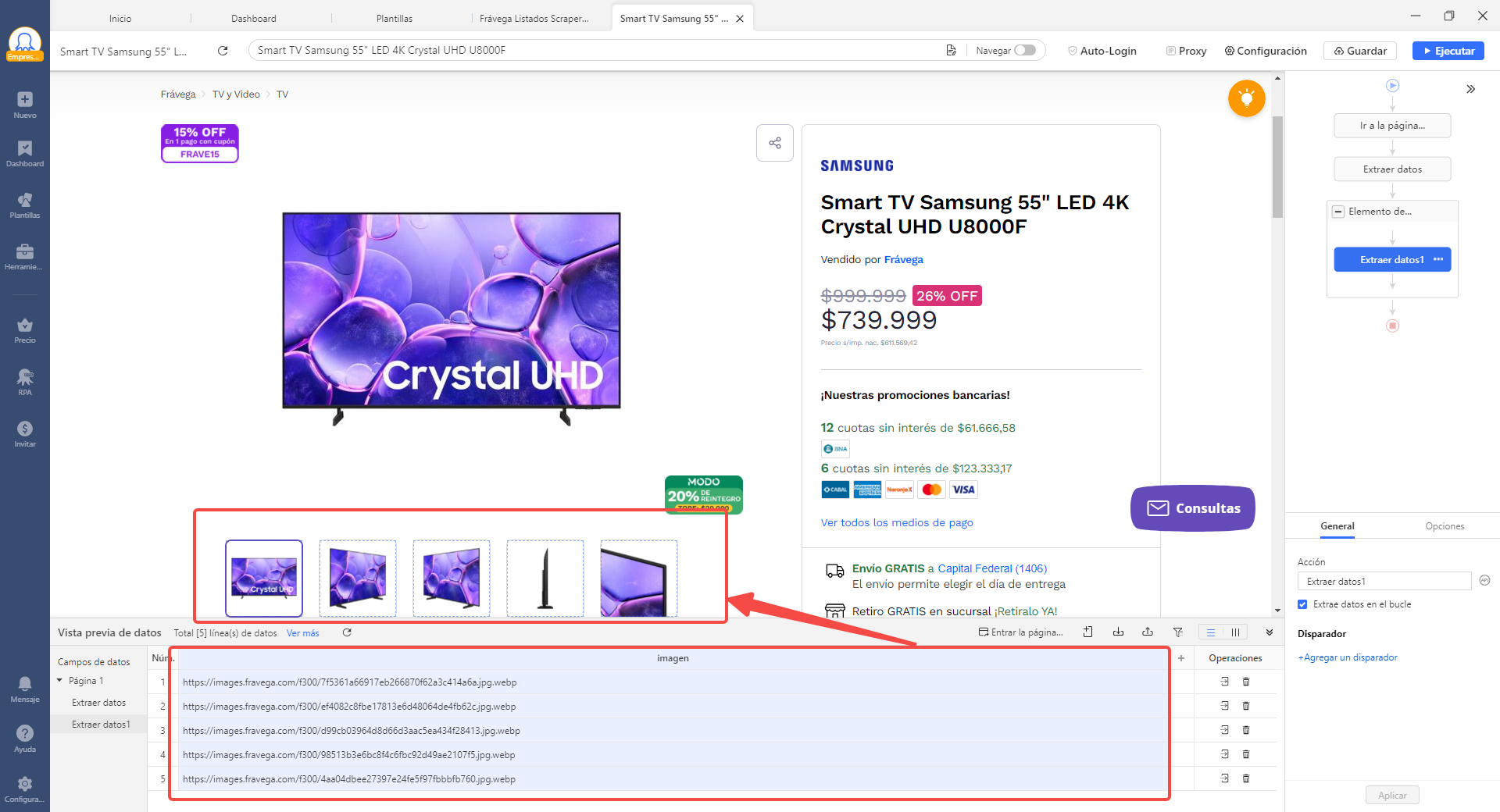 2. Cómo usar el Extractor de productos de Frávega paso a paso