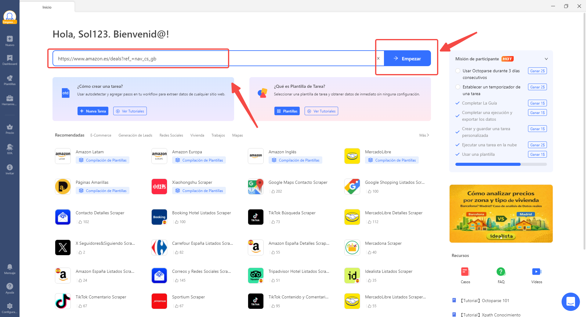 Paso 1: Crear una tarea de scraping